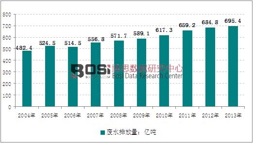 由博思数据发布的《2016-2022年中国工业污水处理行业市场分析与投资前景研究报告》表明:2013年,全国废水排放量695.4亿吨,比上年增加1.5%。工业废水排放量209.8亿吨,比上年减少5.3%;占废水排放总量的30.2%,比上年减少2.1个百分点。城镇生活污水排放量485.1亿吨,比上年增加4.8%;占废水排放总量的69.8%,比上年增加2.2个百分点。